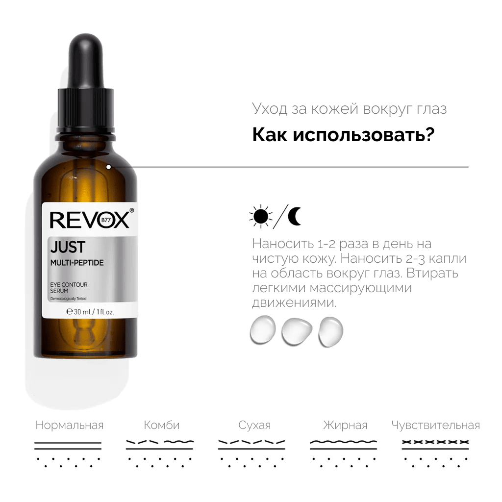 Наносите 3–4 капли на область вокруг глаз утром и/или вечером на чистую и сухую кожу. Аккуратно втирайте до полного впитывания. Затем нанесите следующее средство.
