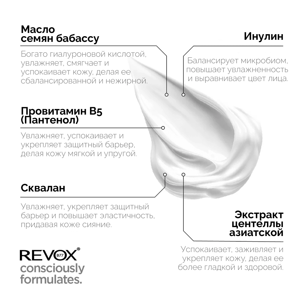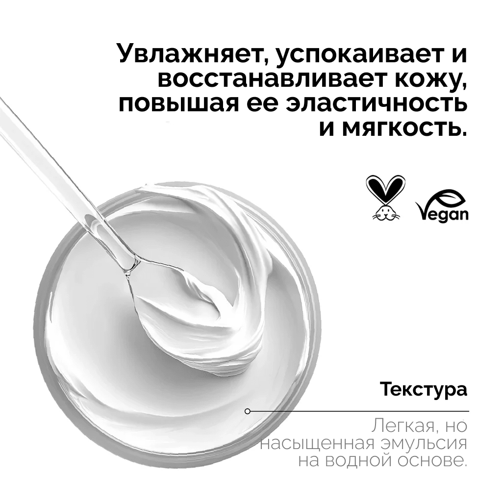 Water/ Aqua, Provitamin B5 / Panthenol, Propylene Glycol, Butylene Glycol, Centella Asiatica Leaf Extract, Glycerin, Inulin, Alpha-Glucan Oligosaccharide, Ceteareth-20, Dimethicone, Shea Butter / Butyrospermum Parkii Butter, Babassu Seed Oil / Orbignya Oleifera Seed Oil, Betaine, Caprylic/Capric Triglyceride, Octyldodecanol, Glyceryl Stearate SE, Squalane, Phenoxyethanol, Allantoin, Bisabolol, Ammonium Acryloyldimethyltaurate/VP Copolymer, Disodium EDTA, Fragrance / Parfum, Octadecyl Di-t-butyl-4 Hydroxyhydrocinnamate. Мы постоянно совершенствуем наши рецептуры, поэтому списки ингредиентов, указанные на сайте и на упаковке, могут отличаться в зависимости от времени и региона покупки. Проверьте список ингредиентов на упаковке.