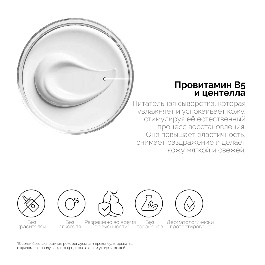 Насыщенный многофункциональный крем с мощным успокаивающим и регенерирующим действием. В этом продукте используется проверенное временем средство для заживления — центелла азиатская, обладающая успокаивающими и противовоспалительными свойствами. Продукт помогает восстановить естественный баланс кожи, устранить дискомфорт и раздражение, а также укрепить кожный барьер. Пантенол в составе помогает снять покраснение и повысить уровень увлажненности кожи, предотвращая ее сухость. Крем можно наносить на любые участки кожи, где ощущается дискомфорт, болезненность, раздражение от бритвы или другие повреждения. Благодаря мягкой формуле он особенно хорошо подходит для регулярного использования на любых участках лица и тела.