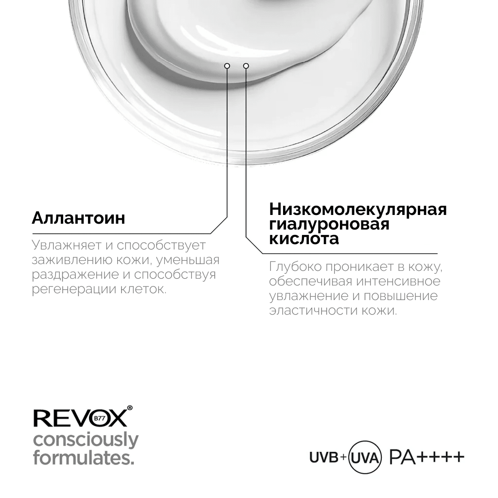 Кремовая текстура средства обеспечивает гладкое и равномерное нанесение, оказывая увлажняющее и защитное действие. Солнцезащитные факторы не позволяют вредным лучам UVA и UVB воздействовать на кожу и повреждать ее, а гиалуроновая кислота удерживает влагу в коже. Витамин Е защищает кожу от различных вредных воздействий солнечного излучения, выступая в качестве поглотителя свободных радикалов. Это средство разработано специально для жирной кожи, поэтому оно не оставляет ощущения жирности или липкости. В результате кожа становится более мягкой, приобретает матовый и бархатистый оттенок и идеально подходит для нанесения основы под макияж. Используйте вместе с другими продуктами REVOX B77 JUST в рамках своего бьюти-ритуала. ЭТО ХИМИЧЕСКИЙ ИЛИ МИНЕРАЛЬНЫЙ СОЛНЦЕЗАЩИТНЫЙ КРЕМ? В этом солнцезащитном креме используются в основном химические фильтры. ОСТАВЛЯЕТ ЛИ ЭТО СРЕДСТВО БЕЛЫЙ НАЛЕТ? Нет, оно не оставляет белого налета и подходит для всех оттенков кожи.