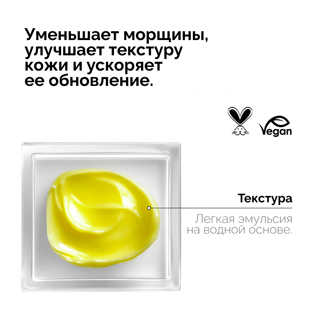 Вечером нанесите средство размером с горошину на чистую сухую кожу лица и шеи, избегая области вокруг глаз. Аккуратно помассируйте до полного впитывания. Начните использовать средство раз в неделю и постепенно увеличивайте частоту применения по мере привыкания кожи.